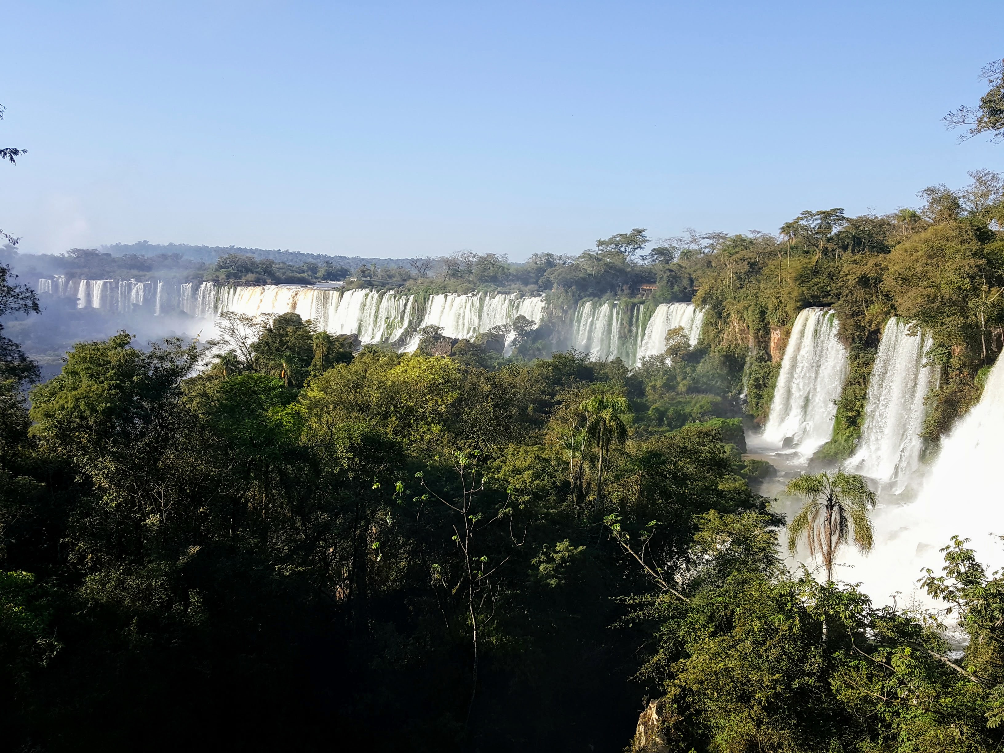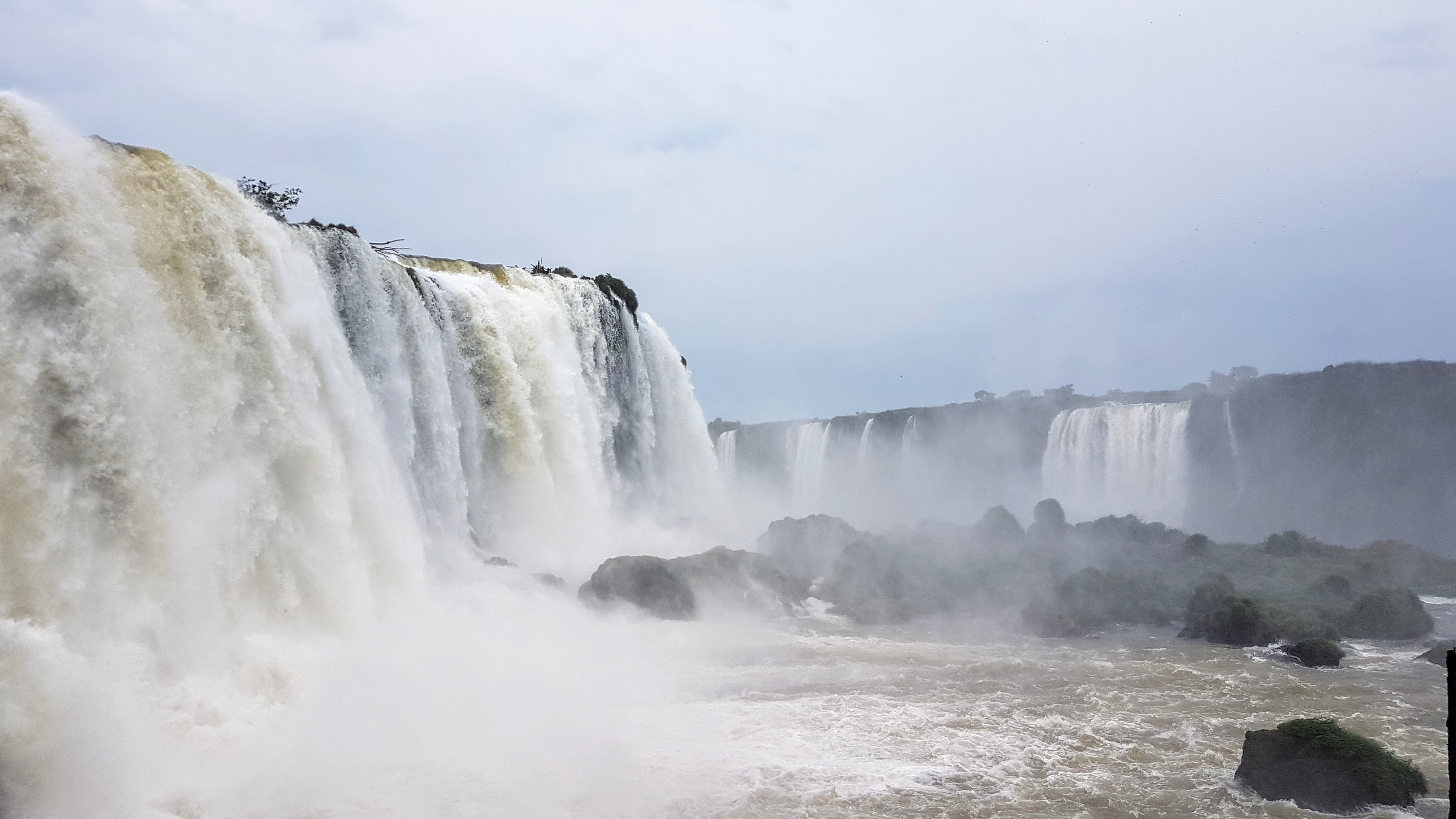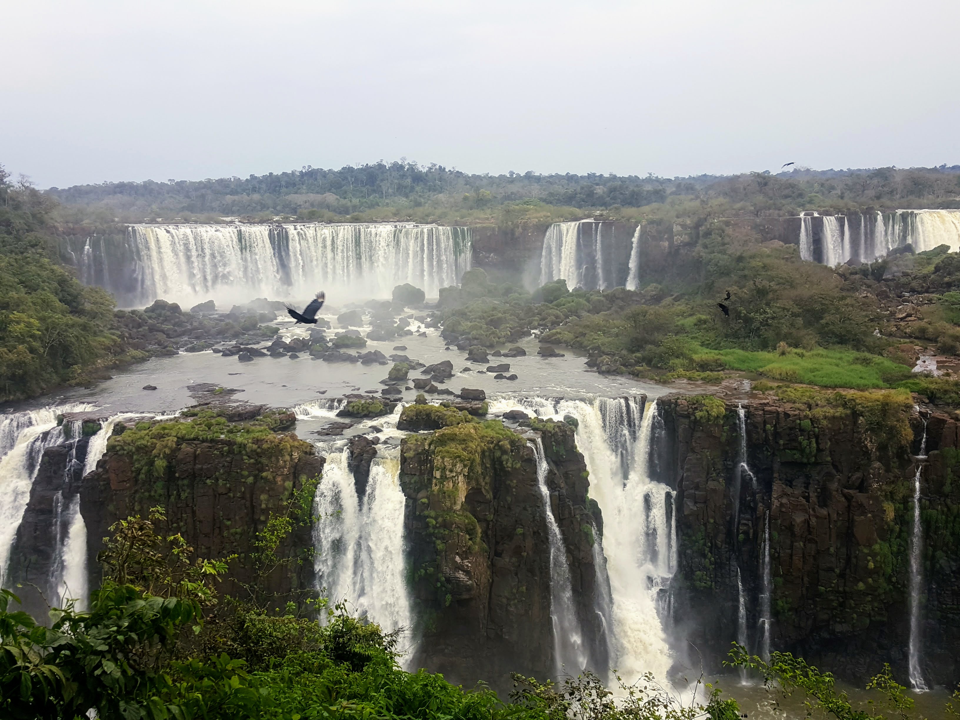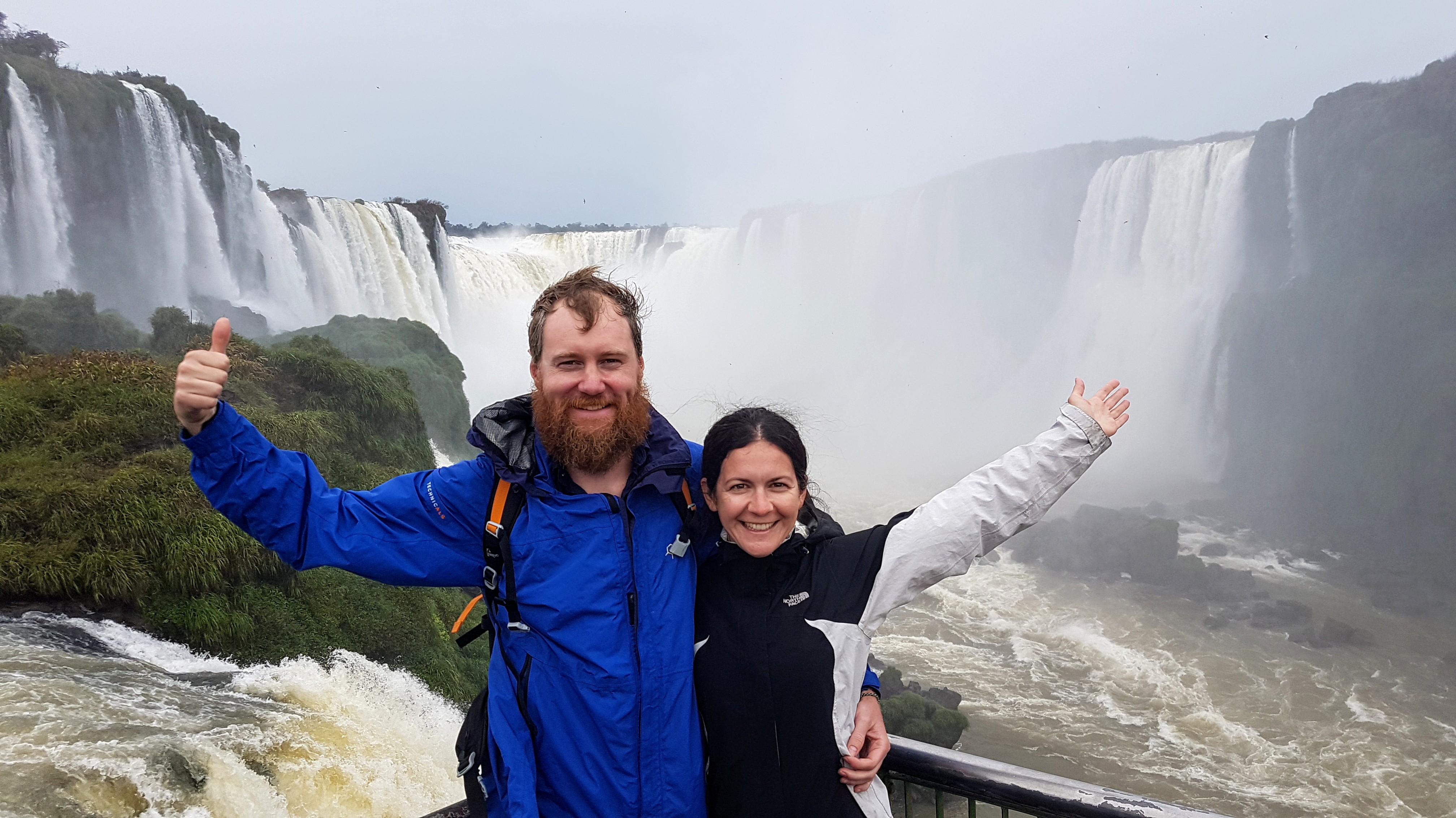 Unlike the nice long walks on the Argentinian side, in Brazil most people (including us) are dropped right at the start of the Iguçu falls (although there are options of kayaking and walks but for extra cost and which in summer may have been enjoyable). Once off the mandatory shuttle bus, there is a path with nice views of the falls along the way which taked about 20 minutes to walk. You then arrive at a lower platform next to the devil’s throat (this is the same devil’s throat you see from higher up on the Argy side). What the Brazil side lacks in walking trails it makes up for by putting you right in the guts of the falls. You get some water spray from the falls in Argentina – you need a good poncho in Brazil as you will get soaked!