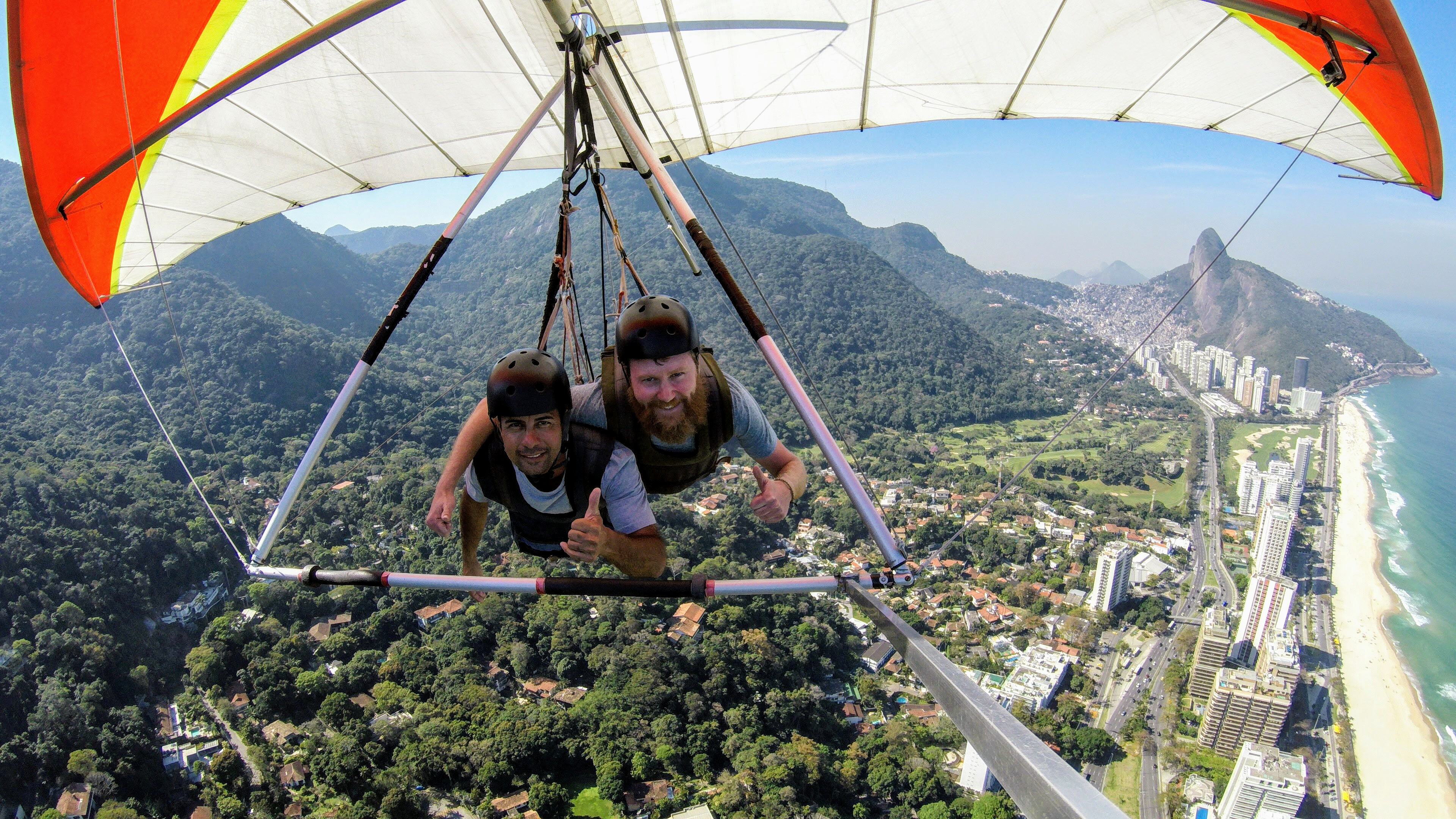 Our next stop was without doubt the highlight of our time in Rio. We headed to São Conrado where we were taken up to the top of a cliff (600 meters high) and from which we ran off the edge of a cliff and hang glided, landing on the beach. It was INCREDIBLE!