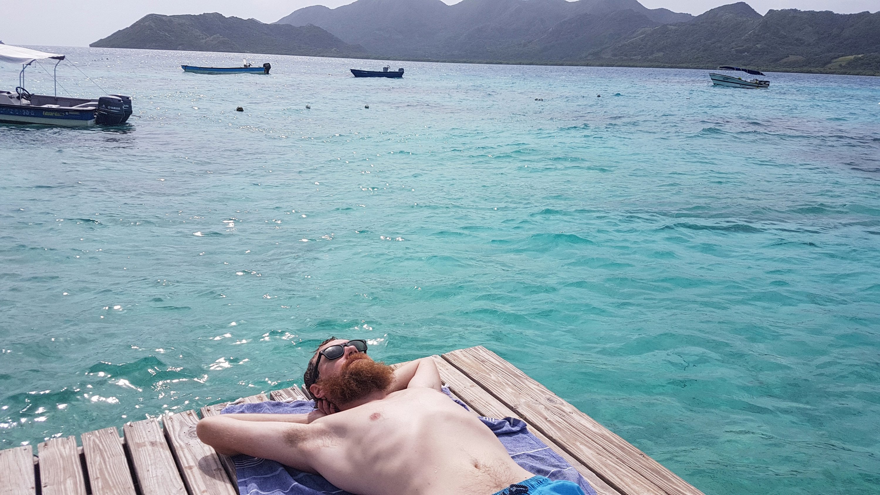 Over on Providencia we (overpaid) for a boat to transfer us over to the tiny Cayó Cangrejo (Crab Island). We needed to pay a small entrance fee to the national park to get access to laze around in the small area where you can jump off into the beautiful blue waters and do a little snorkling. In our experience the snorkling was a little overrated but we did see a huge stingray swim by! At one point everyone else had left and we found ourselves enjoying the island to ourselves (plus the national park staff).
